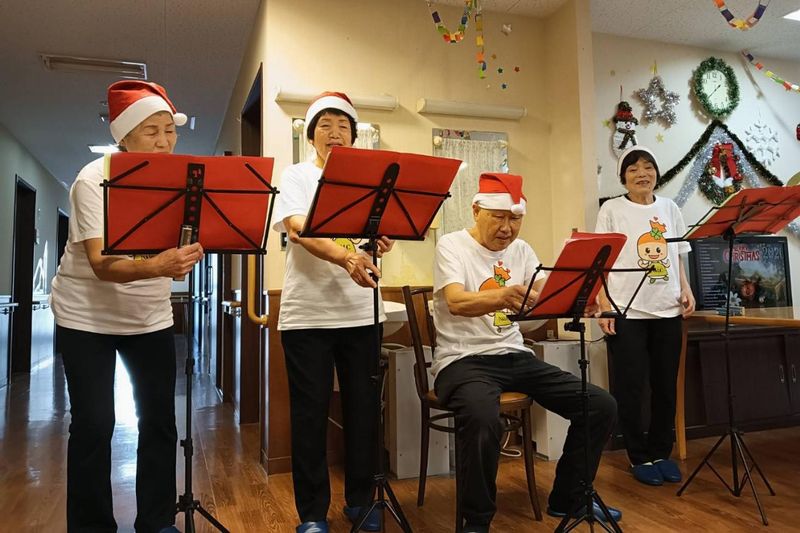 12月18日グループホーム「ここから木田元宮」のクリスマス会にハーモニカサークルが参加しました。